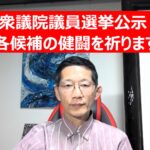 - 衆議院議員選挙公示 各候補の健闘を祈ります衆議院議員選挙が公示されました。 選挙は政策本位で行うべきです。統一教会とズブズブとか、裏金とかは、本筋ではありません。 SNSが発達し、国民の眼は肥えており、どの政治家が国民のために働くかわかっています。 ともかく長丁場ですので、各候補のご健闘を祈念いたします。