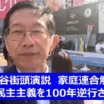 - 渋谷街頭演説 家庭連合解散は民主主義を100年逆行させる家庭連合の解散命令決定が出たちょうど100年前の1925年、思想信条の自由を否定する治安維持法が制定され、大本教、創価学会など多くの宗教団体が抑圧されました。 来週家庭連合の東京高裁の裁判結果がでますが、民主主義の逆行とならぬよう、公正な裁判を願います。