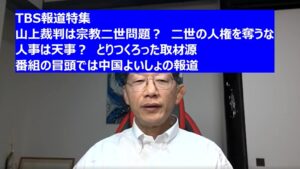 TBS報道特集 TBS報道特集 山上裁判は宗教二世問題? 二世の人権を奪うな 人事は天事? とりつくろった取材源 番組の冒頭では中国よいしょの報道TBS報道特集