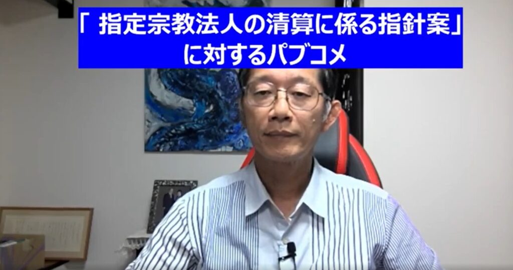 「 指定宗教法人の清算に係る指針案」に対するパブコメ