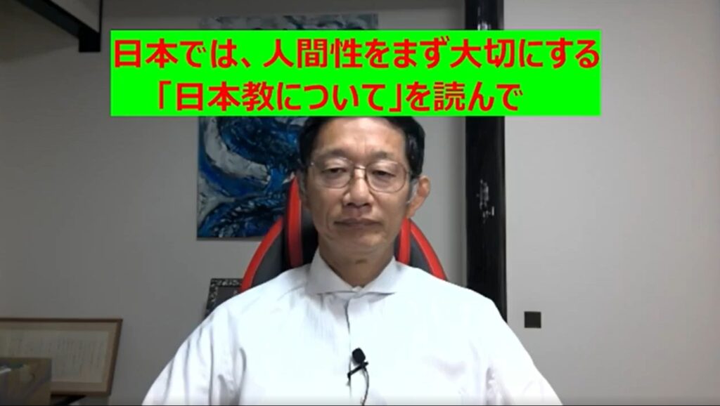 この「人間であれ」という言葉は何を主張しているのでしょう。一言に言えばまず日本教徒であるということで、言い換えれば日本教の教義に忠実であるということなのです。」