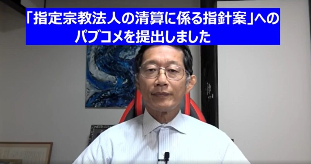 「指定宗教法人の清算に係る指針案」へのパブコメを提出しました