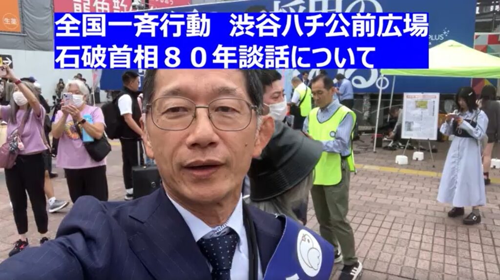 全国一斉行動 渋谷ハチ公前広場 石破首相80年談話について