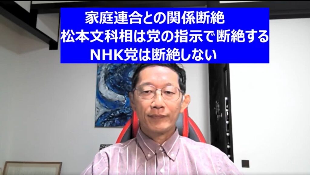 家庭連合との関係断絶 松本文科相は党の指示で断絶する NHK党は断絶しない