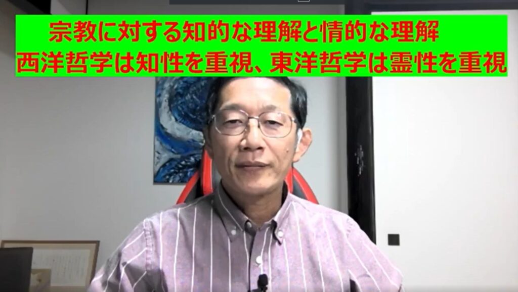 宗教に対する知的な理解と情的な理解 西洋哲学は知性を重視、東洋哲学は霊性を重視