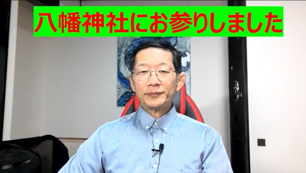 八幡神社をお参りして、家内安全と、日本や世界の人々が平和に暮らすことができるよう、お祈りしてきました。視聴者の皆様も、この一年が健康でありますよう、お祈りいたします。