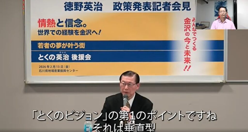 3月に金沢市長選に挑戦する徳野英治氏が、政策発表記者会見を行いました。