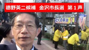 徳野英二候補が、金沢市長選の第1声を発信しました。