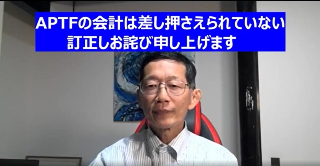 本日、APTFの会計が差し押さえられたのではないか、という動画を発信しました。同様の内容のXのポストも致しました。